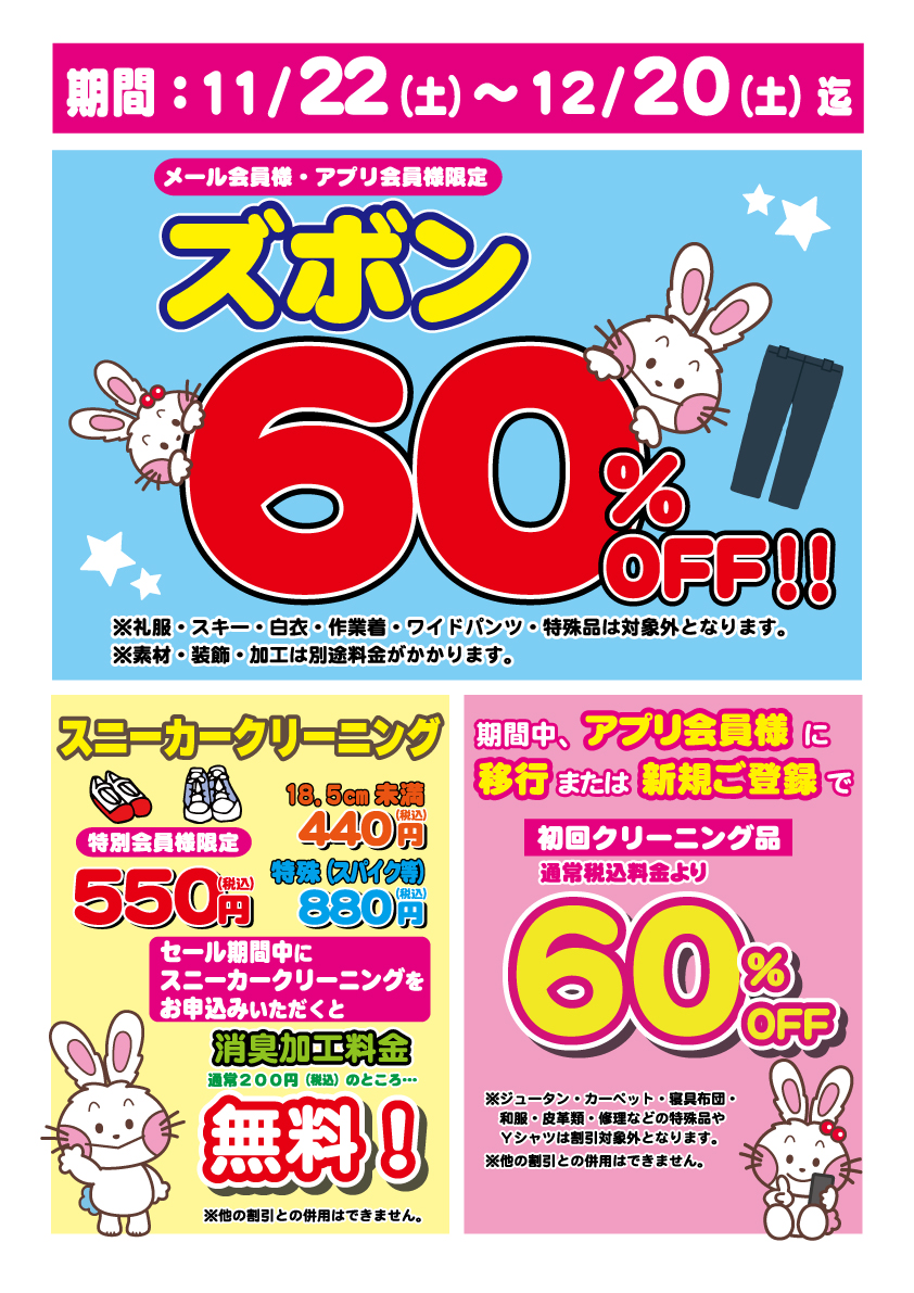 うさちゃんクリーニングのクリーニング基本料金を始め、その他料金についてご紹介しております。 また、特別会員の入会期間は1年ですが、1年毎に更新することができます。特別会員の入会時と更新時には、通常価格から50%の割引にてお受けできます。